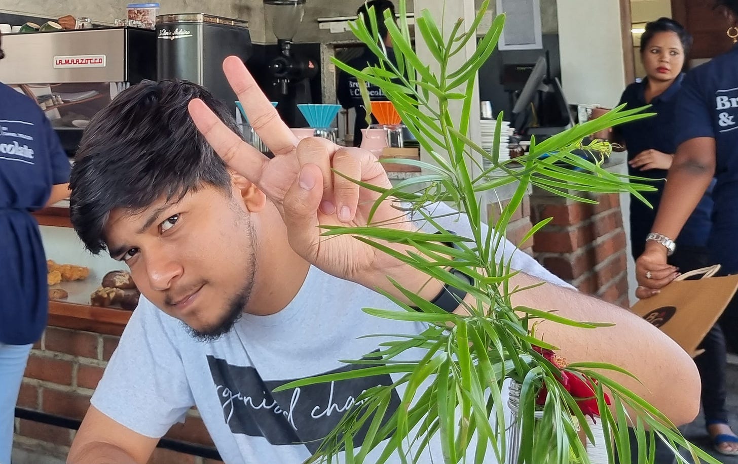 And here is a photo of mine at a cafe in Pondicherry, making a weird face 😛