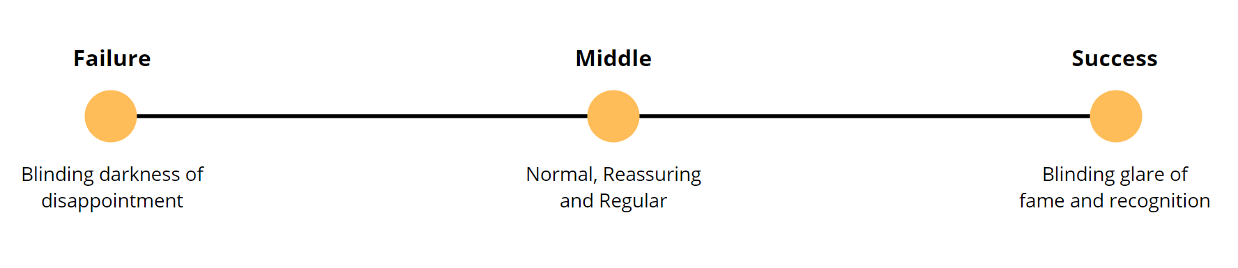 Most of our lives, we are in the middle, just being "Normal". Failure catapults you abruptly way out over one corner which is full of blinding darkness of disappointment. Success on the other hand, catapults you just as far, but in the opposite direction, into the equally blinding glare of praise, fame and recognition.